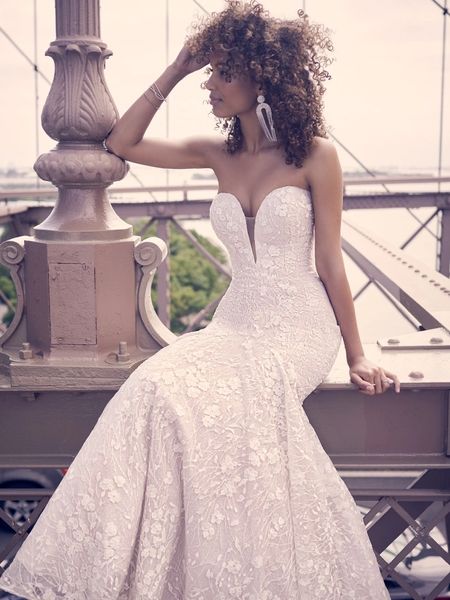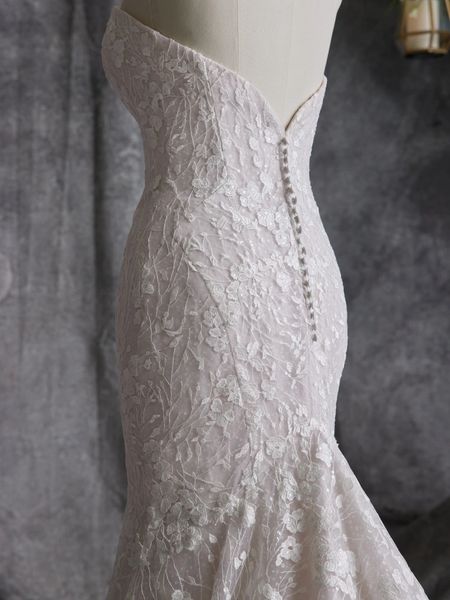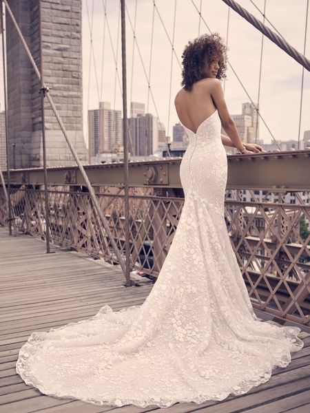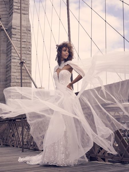 - Detachable off-the-shoulder lace cap-sleeves sold separately