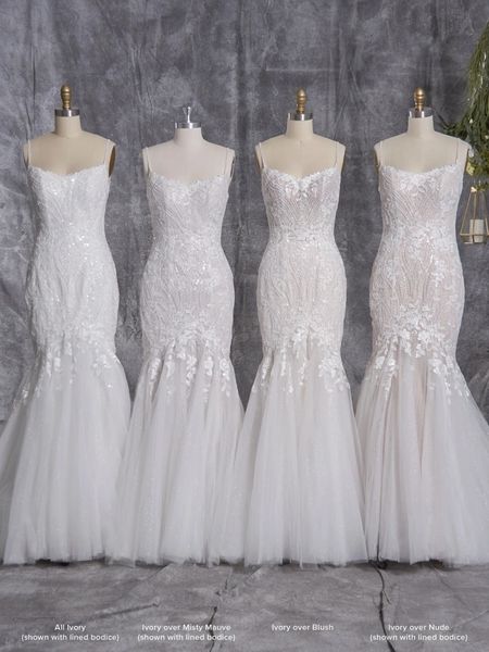 - Photographed in Ivory over Blush (gown with Natural Illusion), featured on our size 18 model in Ivory over Misty Mauve (gown with Ivory Illusion), and with a lined front bodice in All Ivory (gown with Ivory Illusion)