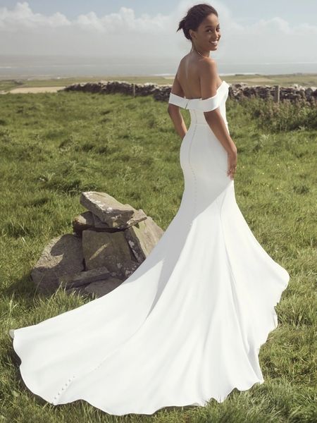 Sexy crepe off-the-shoulder wedding gown with V-neck